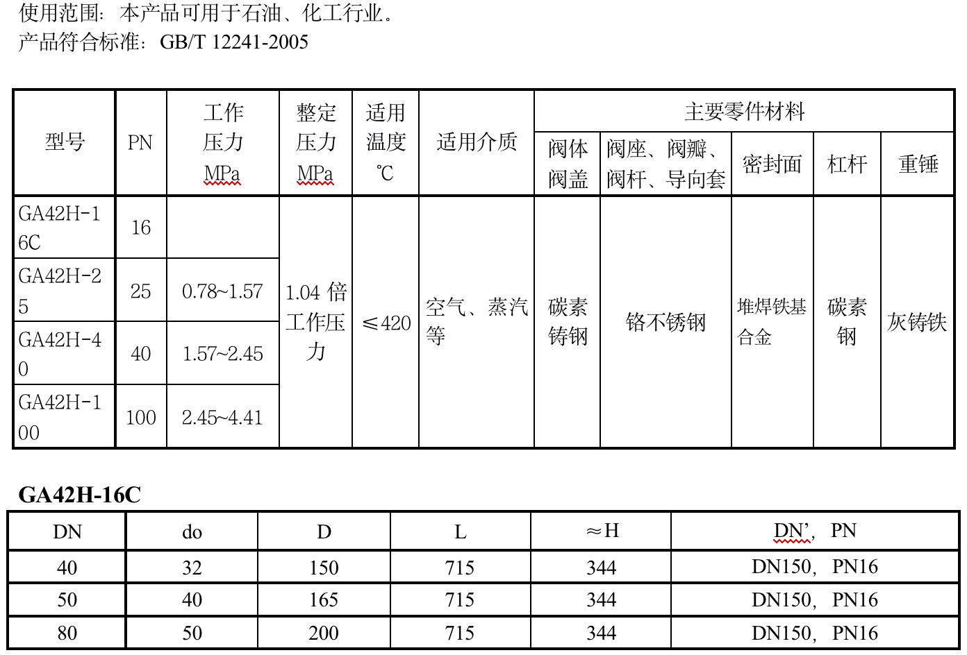 PN16~100单杠杆式安全阀